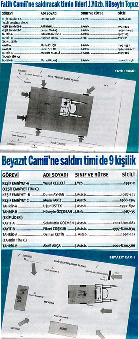 Fatih ve Beyazıt Camii´ne bomba yerleştirecek timlerin isim listesi için tıklayın