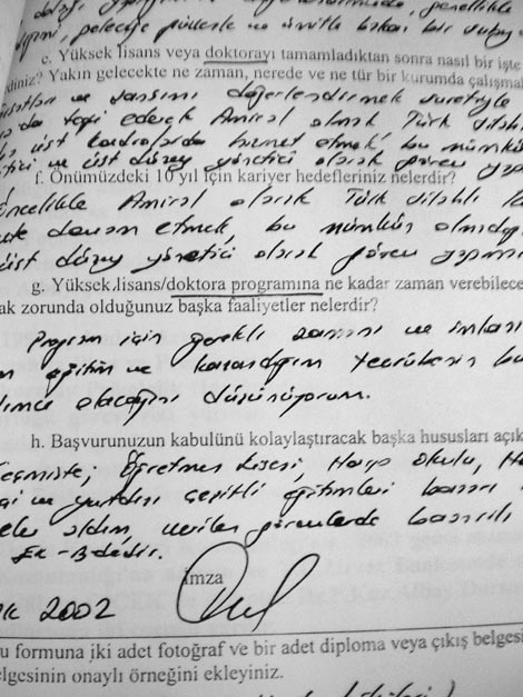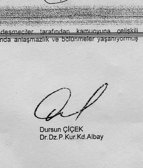 Taraf Gazetesi´nde yayınlanan ve Türkiye´yi ayağa kaldıran demokrasiye komplo planıyla ilgili haberin üzerinden bir hafta geçti. Türkiye günlerdir skandal belgedeki Kıdemli Kurmay Albay Dursun Çiçek´e ait olduğu iddia edilen imza gerçek mi sahte mi tartışmasını yapıyor. Askeri savcılık, Genelkurmay Harekat Dairesi tarafından hazırlandığı iddia edilen belgedeki imzayla ilgili olarak soruşturma açarken, kamuoyu kriminal incelemenin sonucuna kilitlenmiş durumda. Zaman, tartışmalara son noktayı koyacak önemli bir belgeye ulaştı. Albay Çiçek´in, 17 Ocak 2002´de Çukurova Üniversitesi´nde doktora yapmak için müracaat ettiği sırada kullandığı imza ve el yazısını buldu. İşletme Anabilim Dalı´nda doktora yapan Çiçek´in, üniversitede resmi evraklara attığı imzalarla skandal eylem planının altında yer alan imza büyük benzerlik gösteriyor.