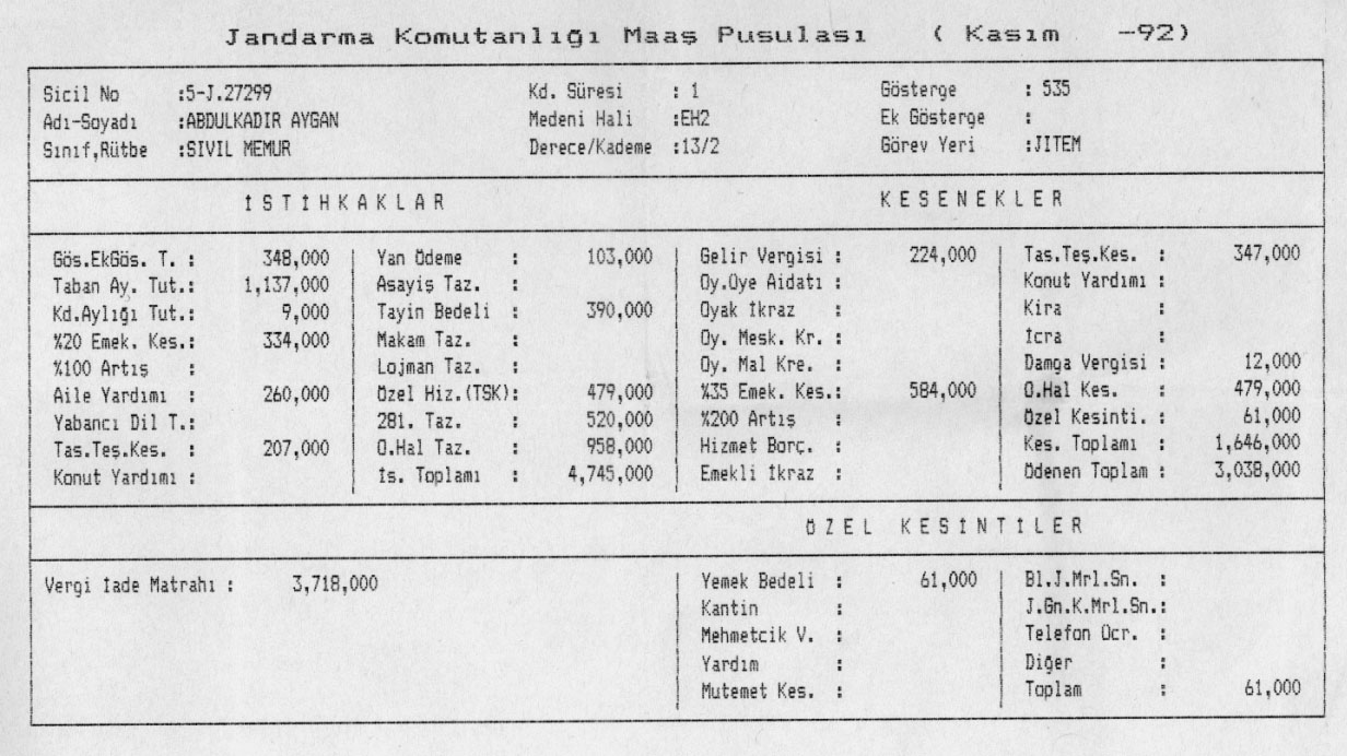JİTEM´den bordrolu Abdulkadir Aygan hakkında daha geniş bilgi